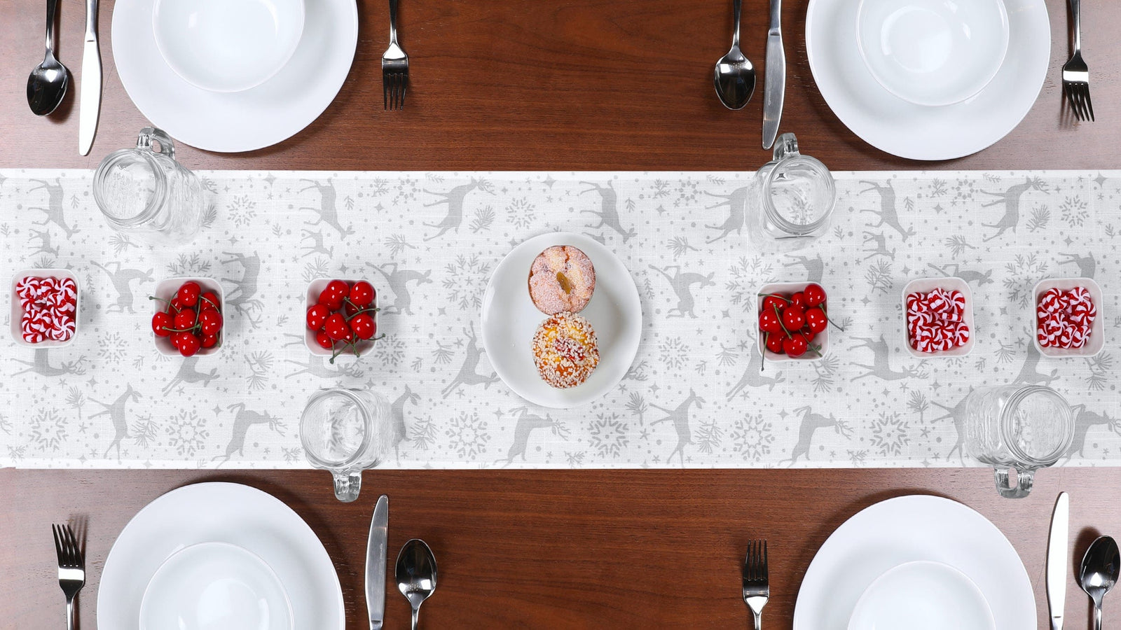 • Featuring beautiful silver reindeer and snowflake woodland winter scene print on an elegant brilliant white fabric you’ll enhance any event, party or gathering with this stunning silver winter scene print table runner.