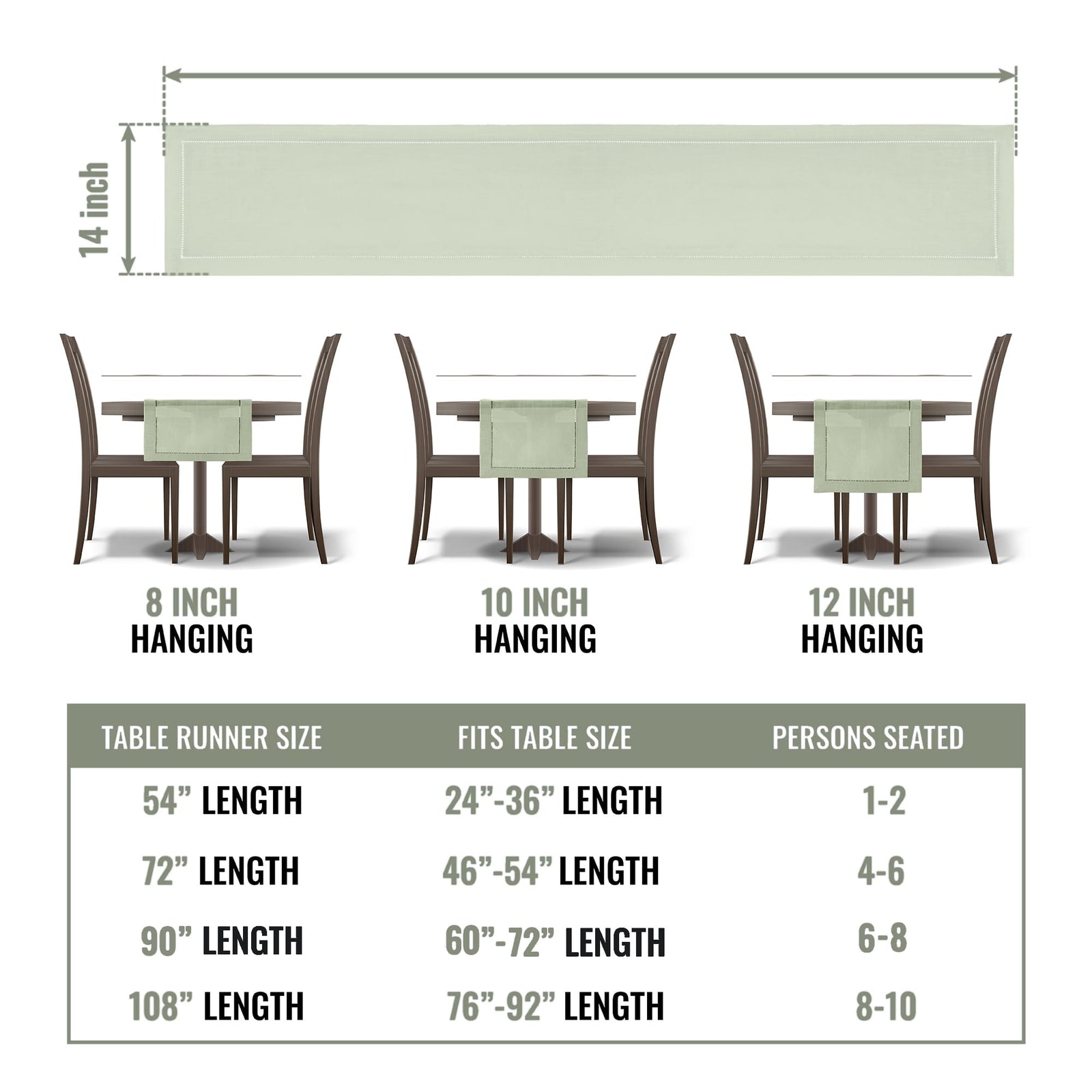 • Featuring beautiful sage green color, farmhouse style hemstitch borders, and a flexible flowing fabric, you’ll enhance any event, party or gathering with this rustic sage green hemstitch table runner.